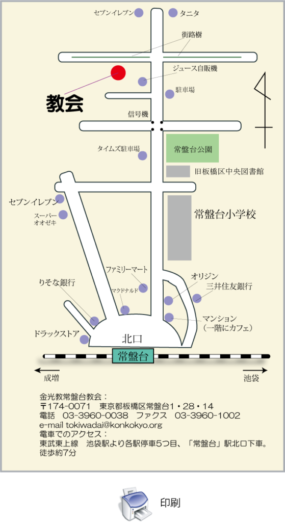 金光教常盤台教会〒174-0071 東京都板橋区常盤台1-28-14TEL:03-3960-0038